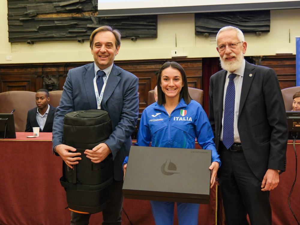 Sara Nestola è stata premiata dal Rettore Paolo Martelli e anche dal CUS Parma, che con il Presidente Iacopo Tadonio le ha consegnato un voucher per attrezzatura tecnica Lacertosus.